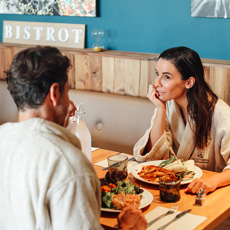 Le restaurant de la Thalasso vous accueille dans une ambiance conviviale et chaleureuse et vous propose une formule Brunch Time* de 11h30 à 14h30, sous forme de buffets, concoctées par notre Cheffe avec des produits frais du jour.