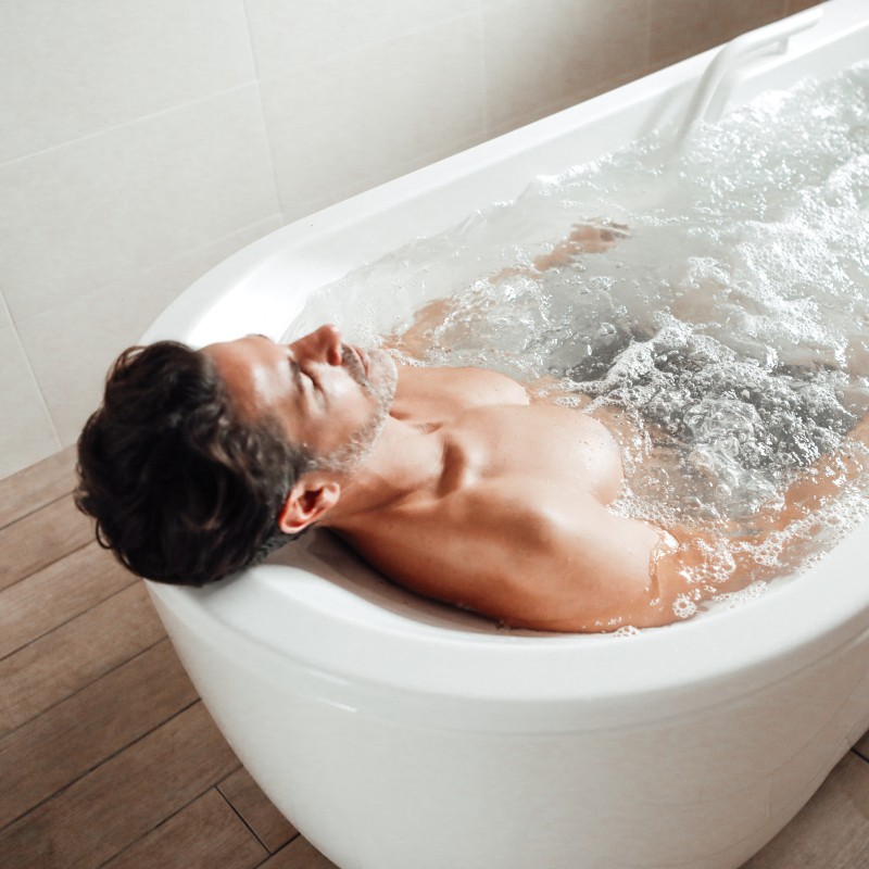 Le bain hydromassant de la Thalasso Deauville Algotherm est un massage par jets d’eau dans une baignoire d’eau de mer chaude qui délasse les muscles, stimule la circulation et favorise l’absorption par le corps des actifs marins.